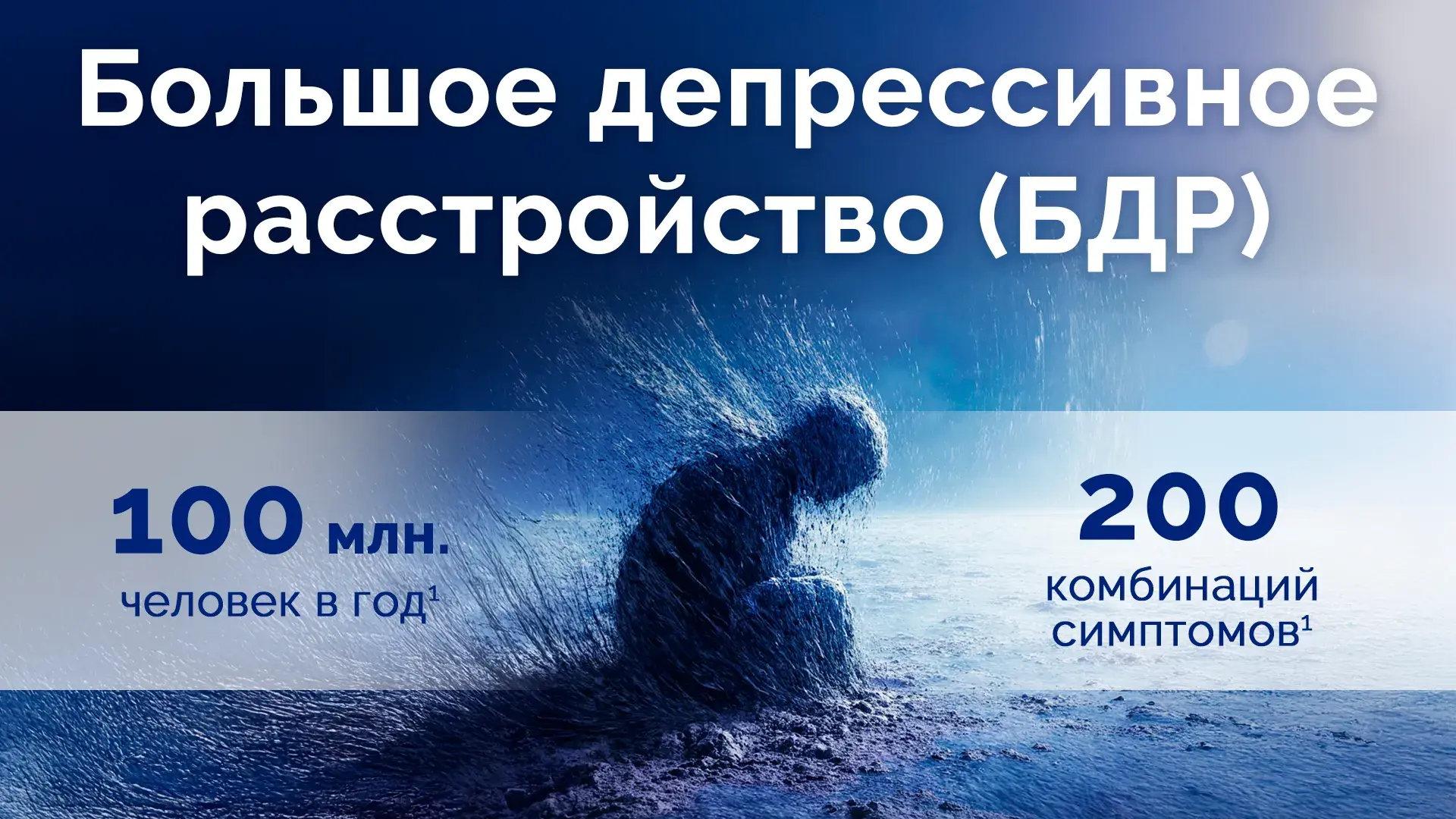 Каждый год примерно 100 миллионов человек испытывают симптомы депрессии и нуждаются в медицинской помощи1. Возможно более 200 комбинаций симптомов характерных для диагноза «Большое депрессивное расстройство»2. При этом менее 30% пациентов достигают ремиссии после первого курса лечения2.